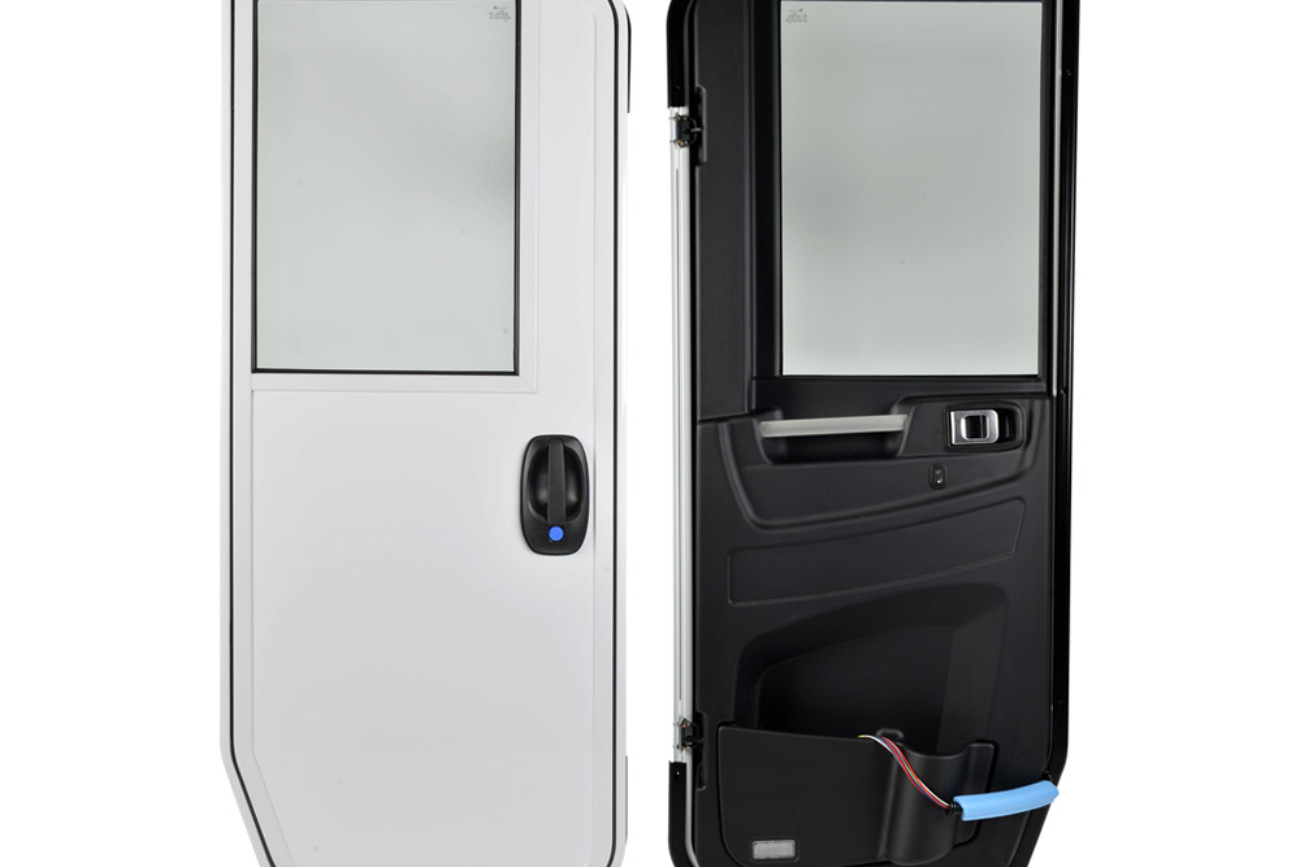 Portes chauffeur, portes passager, portes cellule, portillons. Intégration parfaite à la structure du véhicule. Ouverture manuelle ou électrique.